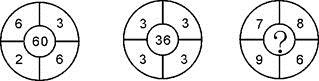 第一个圆圈中有1个奇数,仅通过加法一般无法得到结果。又因为两个中心数字都很容易分解,所以考虑先加减后乘除。(2+3)×(6+6)=60,(3+3)×(3+3)=36,(9+8)×(7+6)=221。因此,本题答案为B选项。