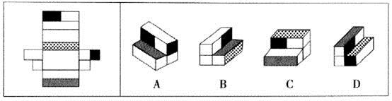 A.A B.B C.C D.D 答案:A。 解析:运用排除法,题图最上面的黑白面与带点的一面不相接,排除C、D;带点的一面与有灰色阴影的面不相接,排除B,A正确。">