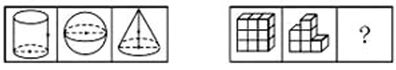 。可知球体的体积为圆柱体体积与圆锥体体积之和。则第二组图也应当符合这一规律,第一个图有9个小方块,第二个图有6个小方块,第三个图当是3个小方块,所以正确答案为A项。