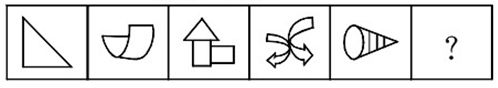 答案:D。 解析:本题考查封闭区间数,题干图形中的封闭区间数依次为:1,2,3,4,5,因此第六项中的图形封闭空间数应为6。只有D选项符合,因此选D。">