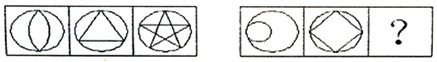 这道题属于数量类,主要考察图形的交点类型:接触点。考虑内部图形与外部图形的接触点的个数 第一组图依次是2,3,5;第二组依次是1,4,(5) 其中2+3=5,1+4=(5)">