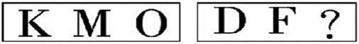 答案:B。 解析:第一组字母按英文26个字母顺序,K、M、O分别间隔一位排列;同理,第二组字母应该选H。">