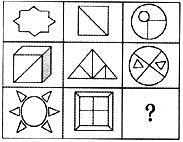 答案:A。 解析:第一行三个图形所含的区域数分别是1、2、3;第二行三个图形所含的区域数分别是4、5、6;第三行三个图形所含的区域数分别是7、8、9;只有A所含的区域数是9。">