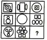 答案:B。 解析:第一行3个图中每个图圆形和方形的个数分别为(2,3)、(1,2)、(1,2);第二行3个图中每个图圆形和方形的个数分别为(1,2)、(0,1)、(2,3);第三行3个图中每个图圆形和方形的个数分别为(2,3)、(3,4)、(?,?)。从前两行可以看出,每幅图中的圆形数量比方形数量均多1,只有B项符合。因此选B。">