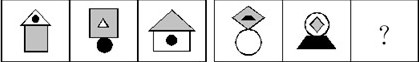 答案:D。 解析:第一组图形中,黑色的圆出现三次,分别是在上方三角的中心、组合图形的外部下端和下方方块的中心。同样,第二组图形中,黑色图形是梯形,也出现在上方菱形的中心、组合图形的外部下端。所以在第三个图形中,它应当包含下方中心为黑色梯形的元素。所以选D">