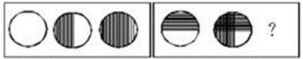 答案:C。 解析:第一组图中,第一个图形没有阴影,第二个图形左半边有阴影,第三个图形全部都是阴影。所以第二组图形也符合这一规律,第一个图形虽然上半部有阴影,但这个阴影是图形的组成部分,所以看做没有阴影,第二个图形左半边有阴影,上半部的阴影任然存在,所以第三个图形应当是整个圆内都有竖条阴影,而上半部有横条阴影,故正确答案为C。">