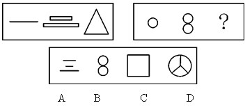 本题考查面的个数,第一组图形中,封闭面的数量分别为0、2、1,第二组图形中,封闭面的个数与第一组相对应,已有的图形封闭面个数为1、2,应该补充一个封闭面个数为0的图形,因此,本题答案为A选项。