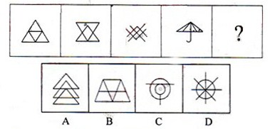 A.A B.B C.C D.D 答案:C。 解析:本题考查封闭面的个数问题。题干的4个图形中封闭面的个数均为4,呈恒等规律,只有C选项的封闭面数量为4。因此,本题答案为C选项。">