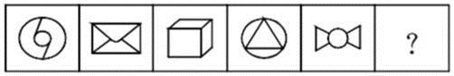答案:C。 解析:观察题干中给出的五幅图形,都有明显的封闭空间,即面。依据“什么明显先数什么”的原则,我们从面的数量来看,给出图形中面的数量分别是:3、4、3、4、3、?,问号处如果填入4,就与前面的数字构成了以3、4为循环节的循环数列。所以本题答案C选项。">