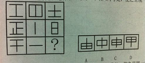 A.如上图所示A B.如上图所示B C.如上图所示C D.如上图所示D 答案:B。 解析:本题考察数量类题型中封闭区域的个数。此处九宫格横着看,第一行和第二行中均有2个封闭区域。因此,第三行中也应有2个封闭区域。本题答案为B项。">