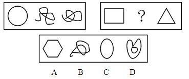 A.图A B.图B C.图C D.图D 答案:A。 解析:本题考查的是样式类中的曲直性。题干第一组图形都是由曲线构成,第二组图形的第一个和第三个图形都是由直线构成的图形,所以“?”处的图形应由直线构成。因此,本题答案为A选项。">