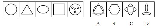 本题考查的是样式类中的曲直性。题干中奇数项的图形都是由曲线构成,偶数项的图形都是由直线构成,所以下一幅应都是由直线构成的图形。因此,本题答案为B选项。