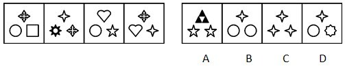 A.图A B.图B C.图C D.图D 答案:D。 解析:此题考查的是图形元素的种类。观察题干,四个图都是由三个不同的元素组成,照此规律,只有D选项符合。因此,本题答案为D选项。">