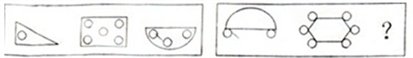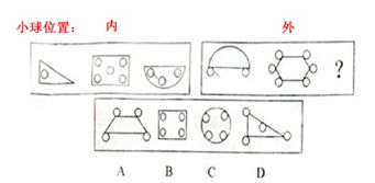 这道题属于位置类,主要考察图形的嵌套与否的表征区别。第一组图小球均在图形内部,第二组图小球均在图形外部。(此解析由gleaf提供)">