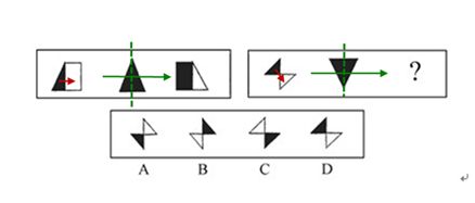 第一套图形中,对第一个图进行翻转,而且阴影部分和空白部分进行交换得到第三个图,第二个图翻转后得到本身。第二套图也满足这个规律。故正确答案为A。