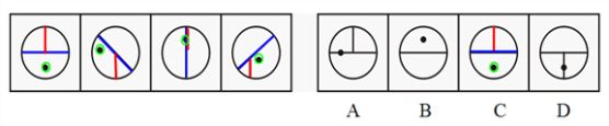 这道题属于位置类,主要考察图形的顺时针旋转。本题主要是看一三五变化,回到初始位置,所以选择C