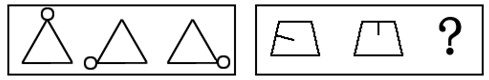 这道题属于位置类,主要考察图形中的局部元素的顺时针旋转。第一组图形中的主体部分三角形不变,小圆形依次逆时针旋转到每个顶点上;第二组图形中,主体部分等腰梯形不变,一条线段在梯形内部顺时针旋转到与梯形每边垂直相交的位置。">
