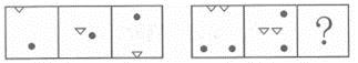 答案:D。 解析:本题考查位置变化。第一组图中,小三角每次向下平移,小圆点逆时针旋转90度。第二组图遵循同样的规律,正确答案为D。">