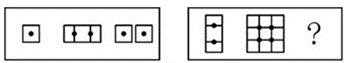 观察题干,第一串图中第三幅图形是由两个第一幅图形组成的,第三幅图形中的两个小图形组成第二幅图形,依此规律,第二串图中问号处的图形应该是有两个第一幅图形组成的,故正确答案为A。