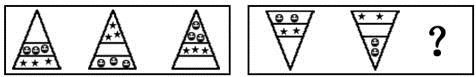答案:B。 解析:第一组图中,图形中的每个小图案依次向下移动一层即为下一个图形;第二组图中,图形中的每个小图形依次向上移动一层即为下一个图形。因此答案为B。">