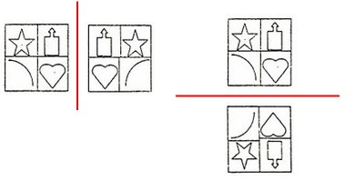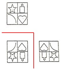 题干中,第一幅图向右翻转可以得到第二幅图,第一幅图向下翻转可以得到第三幅图。如图所示: