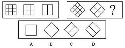 A.A B.B C.C D.D 答案:B。 解析:观察第一组图中的三个图形,为左右对称的,且三个图的外形都是形同的正方形。第二组图中前两个图形,为左右对称的,且二个图形的外形都是菱形。所以,第二组图中第三个图也应是左右对称的,而且外形应为菱形。因此答案为B。">