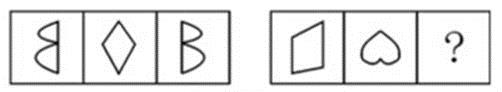 答案:B。 解析:第一组图形中间图为轴对称图形,而前后两个图关于中间图形的中线轴对称。同样的规律可以得到选项为B。">