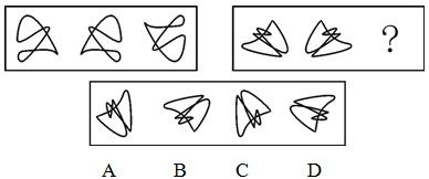 A.A B.B C.C D.D 答案:D。 解析:本题考查样式类的位置变化问题。前一组图形中第一个图向右翻转得到第二个图形,第二个图形向下翻转得到第三个图形,按照相同的规律,后一组图形中第三个图形应由第二个图形向下翻转而来。因此,本题答案为D项。">