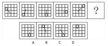 A.如上图A所示 B.如上图B所示 C.如上图C所示 D.如上图D所示 答案:D。 解析:小圆圈逆时针公转,每次两格,线头端点顺时针公转。">