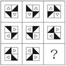 答案:A。 解析:翻转每行的第一个图形关于Y轴翻转得到第二个图形,第二个图形再关于X轴翻转得到第三个图形。因此正确答案选择A选项。">