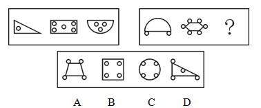 A.A B.B C.C D.D 答案:A。 解析:第一组图中,三个图形的小圆圈的位置都在图形内部;第二组图中,前两个图形的小圆圈的位置都在图形外部,显然第三个图形的小圆圈的位置也应该在图形外部。因此,本题答案为A选项。">