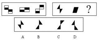 A.A B.B C.C D.D 答案:C。 解析:观察第一套图发现,将前一个图形左半部分下移,右半部分上移,得到下一个图形。第二套图中第一个图形的左半部分下移,右半部分上移得到第二个图形,按此规律,第二个图形的左半部分下移,右半部分上移得到第三个图形,得到答案C。">