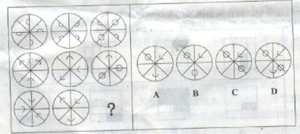 A.如上图A所示 B.如上图B所示 C.如上图C所示 D.如上图D所示 答案:B。 解析:每行中第一个图形顺时针旋转45度,然后与第二个图形叠加。">