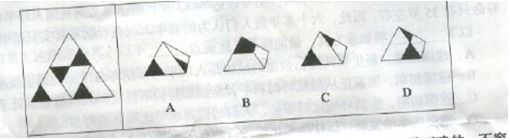 A.A B.B C.C D.D 答案:B。 解析:本题考察相邻面的关系,观察左侧平面图可知,图中黑色三角都没有公共边,折叠后也不可能有公共边,故B项无法折出,本题选B。">