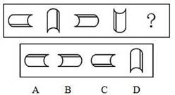 A.图A B.图B C.图C D.图D 答案:C。 解析:根据已知图形发现,组成元素相同,四个图形的位置变化为,前一图形每次顺时针旋转90°,再翻转180°,会得到下一图形,依此规律旋转C项。">