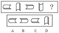 A.图A B.图B C.图C D.图D 答案:C。 解析:此题的考查点是图形的位置,即旋转和翻转。给定一组图中前四个图形的位置变化规律为前一个图形逆时针依次旋转90°,翻转180°到下一个图形,依此规律推知第五个图形应为C选项。">