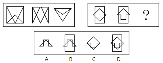 A.如上图所示A B.如上图所示B C.如上图所示C D.如上图所示D 答案:A。 解析:本题考查样式类中的求异和位置类的翻转问题。观察第一组图发现,第一幅图和第二幅图去同存异,然后关于横轴进行翻转即可得到第三幅图形。按照该规律,第二组图形先去同存异,然后再关于横轴翻转,即可得到A">