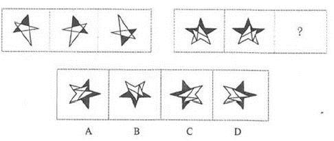 A.如图A B.如图B C.如图C D.如图D 答案:B。 解析:本题考查位置类规律。第一段中,第一个图沿着竖轴翻转得到第二个图,再沿着横轴翻转得到第三个图,依此规律,第二段中,第二图形沿着横轴翻转后,得到B选项,所以选择B。">