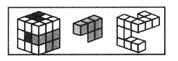下列所给图形的左侧是一完整的立方体,中间和右侧再加上下列选项中的( ),就可以构成左侧的完整的立方体。