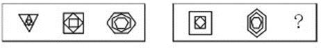 答案:C。 解析:第一组图形的每个图形均由三个大小不同的相同图形构成,由此类推问号处应为三个外形相同的图形构成,并且最外层图形和最内层图形是相似的。所以正确答案为C。">