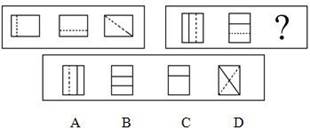 第一套图的三个图内虚线分别为竖线、横线、斜线(对角线)这样的一个规律。第二套图也遵循这一规律,据此可得知答案为D