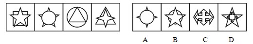 A.A B.B C.C D.D 答案:A。 解析:前四个图依次是五角星叠放在正方形之上,圆形叠放在五角星之上,三角形叠放在圆形之上,四角星叠放在三