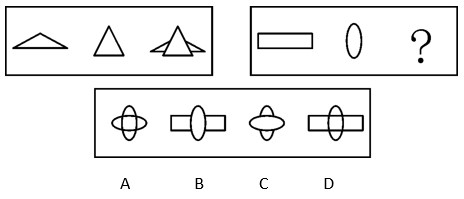 A.A B.B C.C D.D 答案:B。 解析:此题考查的是样式类中的叠加。观察题干,题干中第一组图形中,第2个图形叠加到第1个图形之上,且第1个图形被遮挡的部分不显现;将第一组图形的规律代入第二组,B选项符合此规律。因此,本题答案为B选项。">