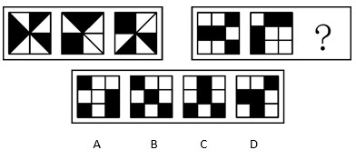A.A B.B C.C D.D 答案:C。 解析:此题考查的是样式类中的叠加。在第一组图形中,第1个图形与第2个图形叠加后:阴影+阴影=空白、空白+阴影=阴影、空白+空白=空白。将这样的规律代入到第二组图形中,符合题意的是C选项。因此,本题答案为C选项。">