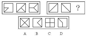 本题考查样式类去同存异规律。第一组图形中,第一个图形和第二个图形的内部去除相同的部分,留下各自不同的部分组成第三个图形;第二组图形符合相同的规律。因此,本题答案为A选项。