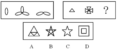 A.A B.B C.C D.D 答案:A。 解析:本题考查元素的求同,第一组图形中,所有的图形都是椭圆形构成的,组成元素相同,第二组图形遵循同样的规律,应该都由相同的小三角形构成,因此,本题答案为A选项。">
