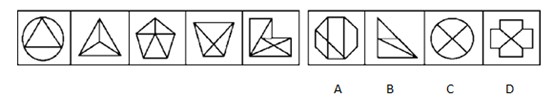 A.A B.B C.C D.D 答案:B。 解析:本题考查形状,图中至少有一个是含有三角形,而且除了圆弧外没有其他的任何的形状,只有三角形。这样符合答案的只有B选项了,其他几个选项都不合适。因此,本题答案为B选项。">