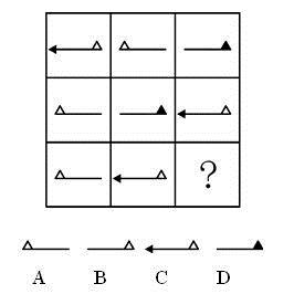 A.A B.B C.C D.D 答案:D。 解析:本题考查样式类中的遍历。题干的前两行都是由三个相同的图形组成,所以第三行也应由这三个的图形组成。因此,本题答案为D选项。">