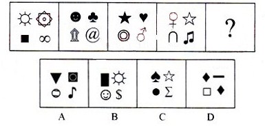 A.A B.B C.C D.D 答案:A。 解析:本题考查样式类运算中的异问题。题干中的每一个图形中的元素样式各不相同,并且,题干中的前四个图形中的所有元素样式亦各不相同,这一规律我们可称之为“全异”。因此,本题答案为A选项。">