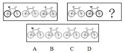 A.A B.B C.C D.D 答案:C。 解析:对比两组图形可发现,第二组图形是第一组图形的遍历,故可知问号处图形应为白色的车座和向上翘起的车把。因此,本题答案为C选项。">